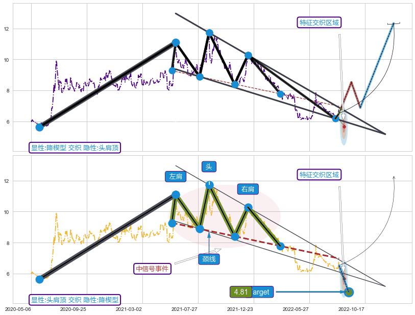 ➣ 【已确认突破】头肩顶 起点:2021-05-13,突破点:2022-03-09,形态共201交易日