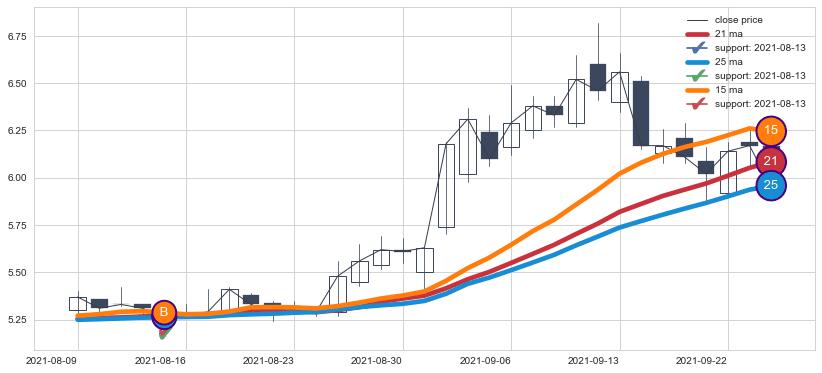 👍 尚未达到多条均线预测的最高波峰价格的平均值, 预期继续上涨