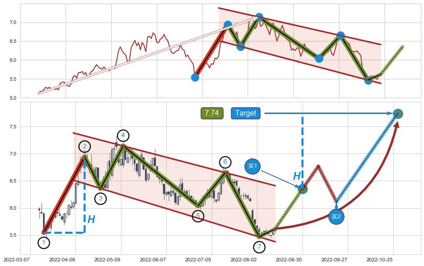 ➢ AI预测: 假定反转如期而至,第❸价格目标位置(2022-11-08, 7.14)
