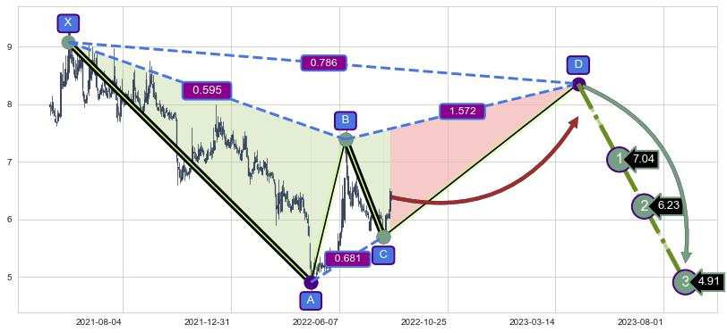 ➣ 未完成【伽利】形态起点X: 2021-05-25, 已到达C点: 2022-08-03, 预测最终D点: 2023-04-12, 共471交易日