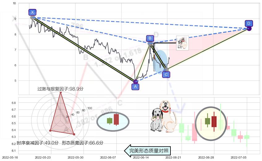 ➣ D点拟合预测价格8.36,距离最后交易收盘价格6.39相差 +30.78%