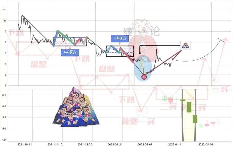 ➣ 【中枢B】:2021-11-29-2022-03-15,中枢由5笔构成,共71交易日, ZG=7.46, ZD=7.03