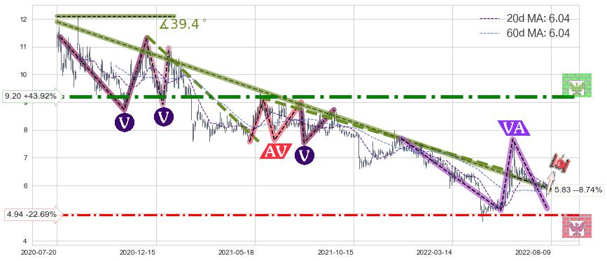 ♘ 支撑价格位4.94,可信任强度56.15%,距离最后交易2022-08-12形成的收盘价格6.39相差 -22.69%