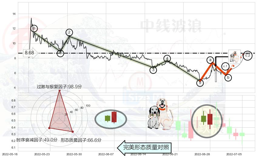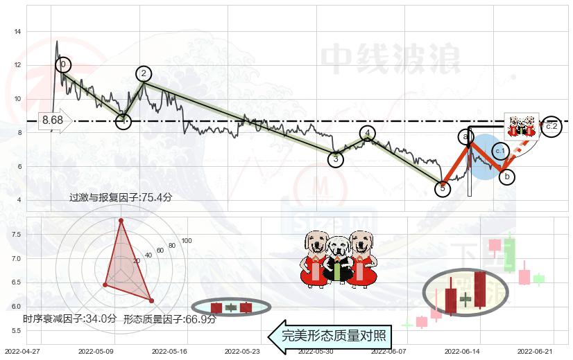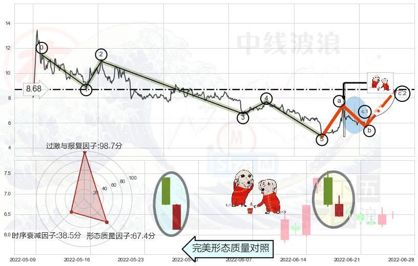 ➢ 锤头线(锤子线) + 波浪理论b蓄力反弹上涨至c信号叠加后【目标达成率】中等,【看多】信号叠加【存续影响中等】