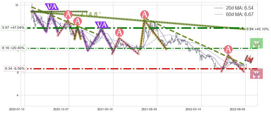 ♘ 阻力价格位8.16,可信任强度68.65%,距离最后交易2022-08-12形成的收盘价格6.78相差 +20.40%