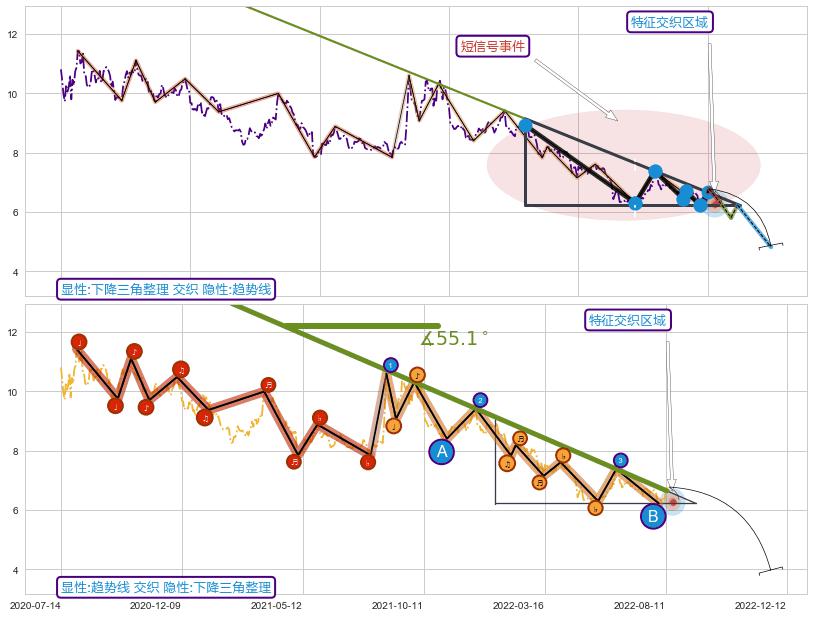 ➢ 下降三角整理属【短级别信号事件】趋势线属【长级别信号事件】长短周期组合信号事件, 短长事件长度比29.30%