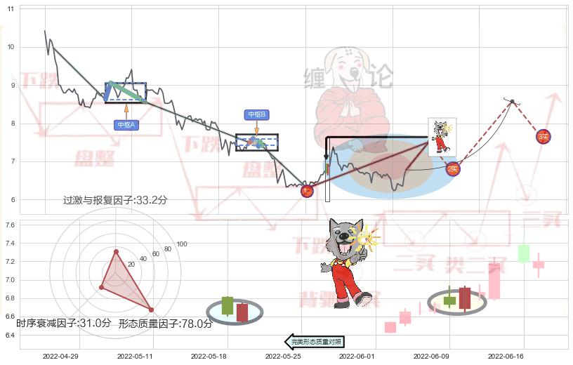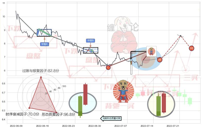 从2022-06-15至2022-08-11,共包含42个交易日,阶段股价下跌-9.67%,阶段股价变动位移路程比: 1 : 5,下跌趋势角度: 32.0