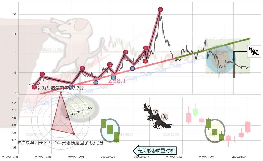 ➢ 🕰 价格走势在2022-06-20至2022-06-22期间形成三只乌鸦,残存影响值:-5.56