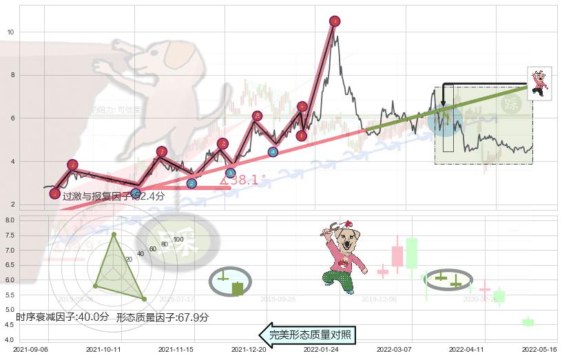➣ 2020-06-15-2021-11-15上升趋势存在反转[风险],其原上升趋势的支撑位(7.49)已破位[强阻力信号],原上升趋势角度: 38.1˚
