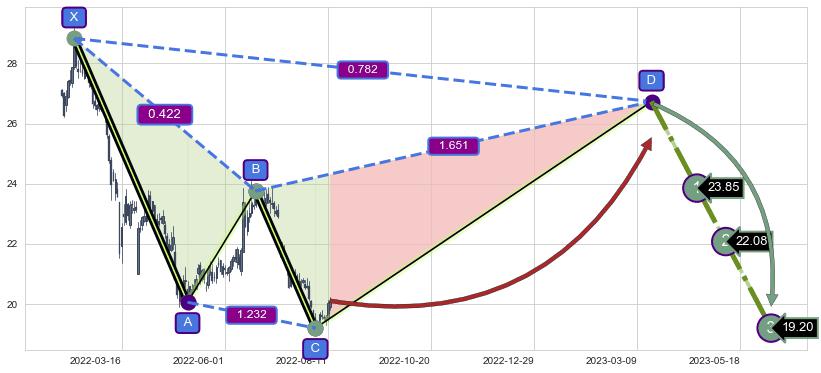 ➣ D点拟合预测价格26.73,距离最后交易收盘价格20.11相差 +32.92%