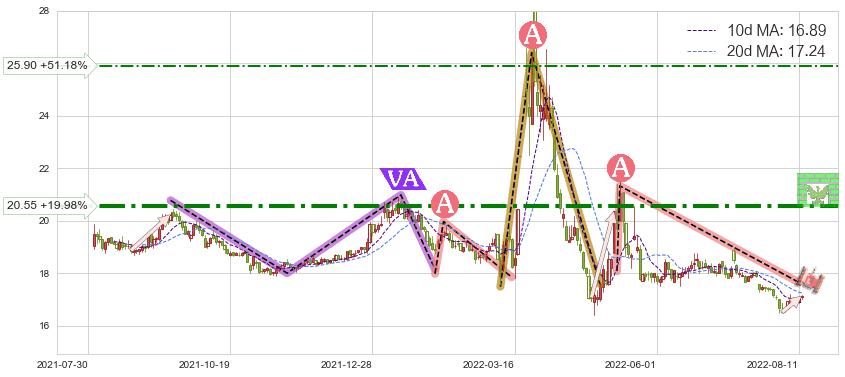 ♘ 阻力价格位25.90,可信任强度52.04%,距离最后交易2022-08-12形成的收盘价格17.13相差 +51.18%