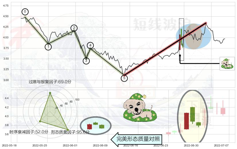 ➢ 🕰 价格走势在2022-07-11至2022-07-13期间形成早晨之星(黎明之星),残存影响值:5.43