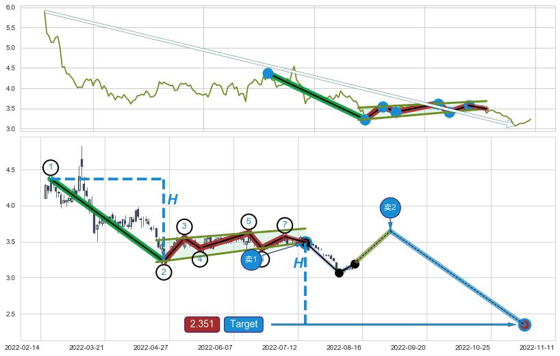➢ AI预测: 假定反转启动后, 第❷目标位置(2022-12-08, 3.427)