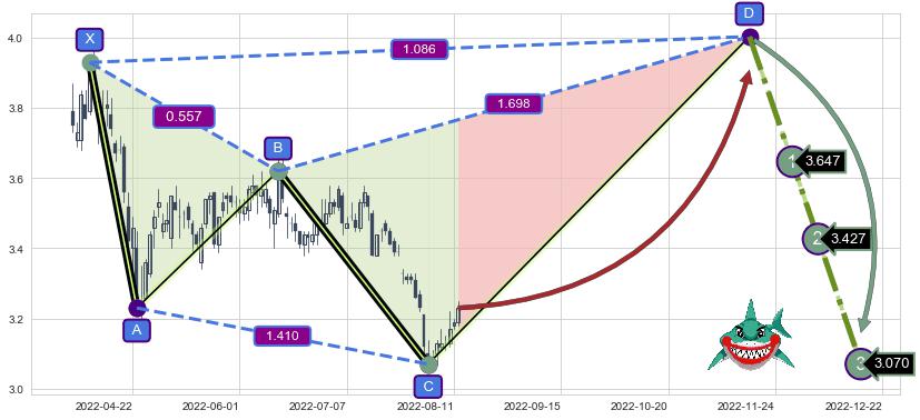 ➣ 未完成【鲨鱼】形态起点X: 2022-04-08, 已到达C点: 2022-08-03, 预测最终D点: 2022-11-16, 共155交易日