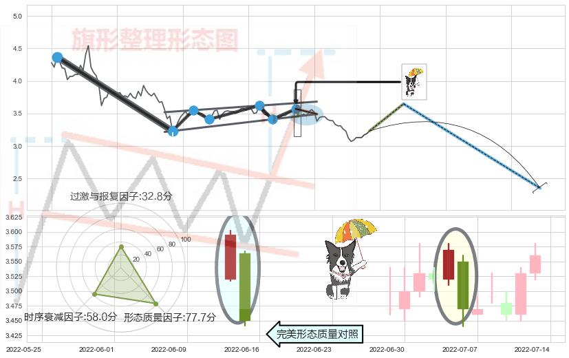 ➢ 【卖1】: 激进型 卖点→(2022-07-15: 3.491 )形成突破升⚑旗形【整理】形态