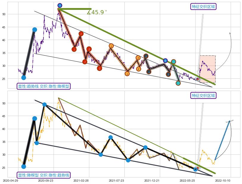 ➢ 最后的下跌趋势2020-10-21至2022-04-01:存在突破迹象,后续小反弹或者反转上涨
