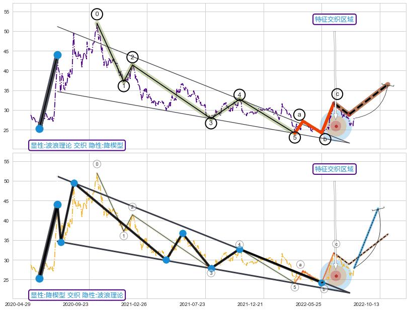 ➢ 波浪理论与降楔型信号事件周期长度级别相同,同周期信号事件