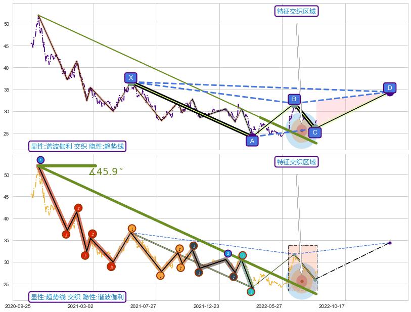 ➣ D点拟合预测价格34.41,距离最后交易收盘价格27.91相差 +23.29%