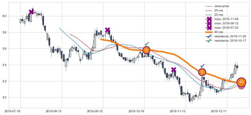 📝 多条均线形成死叉后走势最低价格达到: 4.82