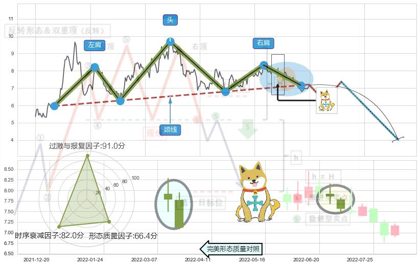 ➢ 【卖1】: 激进型 卖点→(2022-08-02: 7.16 )形成突破头肩顶【反转】形态