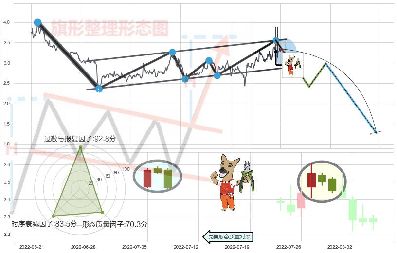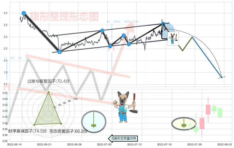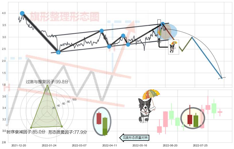➣ 【未确认突破,预测即将形成突破】升⚑旗形起点:2020-08-06, 预测突破点:2022-09-19,形态共517交易日