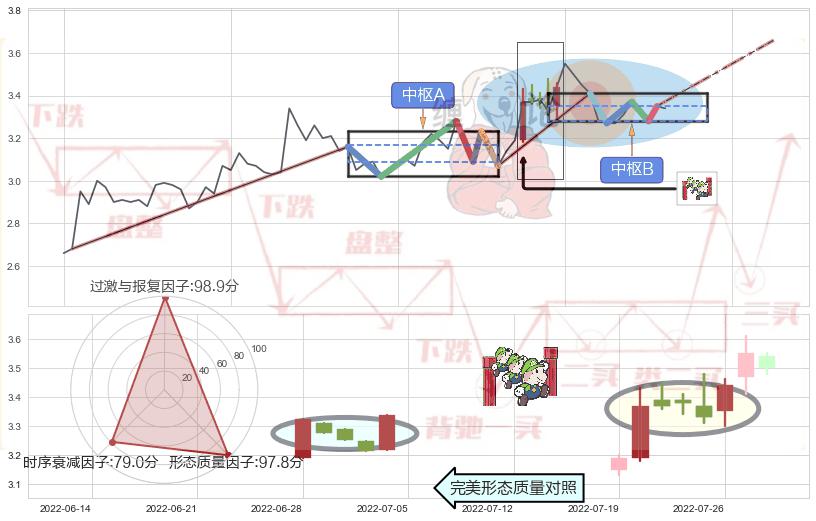 ➢ 上升三部曲(升势三鸦) 🔜 缠论中枢点突破中枢B阻力拉升 综合量化分数:53.53 【中性】