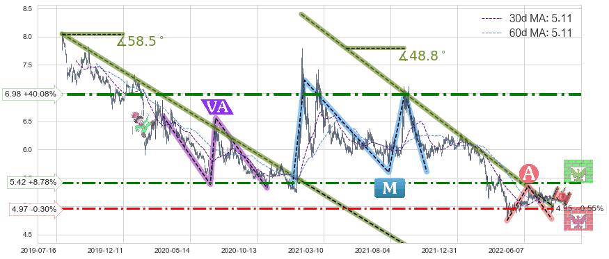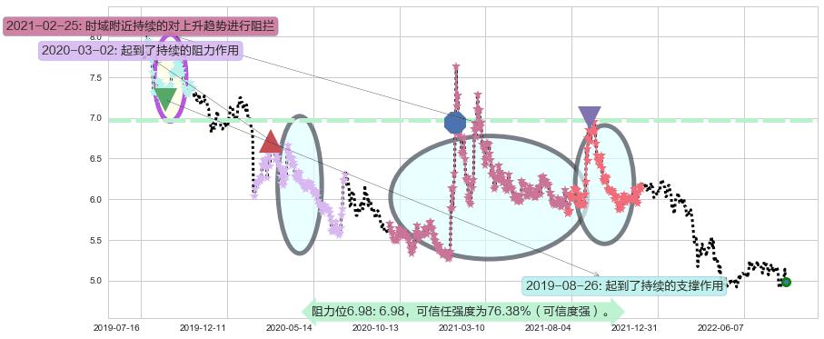 ♘ 阻力价格位6.98,可信任强度76.38%,距离最后交易2022-08-12形成的收盘价格4.98相差 +40.08%