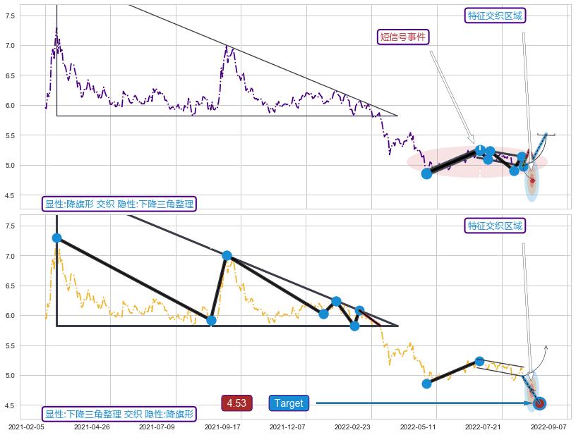 ➣ 【未确认突破,预测即将形成突破】降⚑旗形起点:2022-04-26, 预测突破点:2022-08-17,形态共78交易日