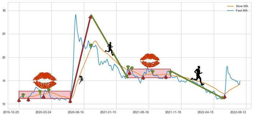 2021-09-23至2022-06-08 慢线与快线呈空头排列, 慢线与快线接触少,无缠绕