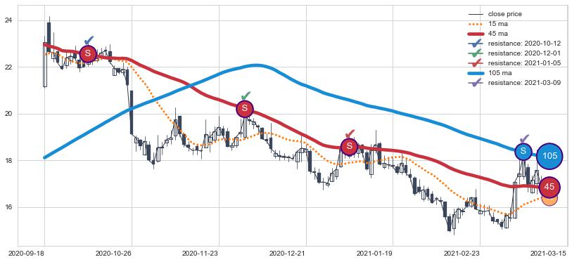 ➢ 最优均线组合共正确确认支撑阻力信号9处,正确确认率 75.00%