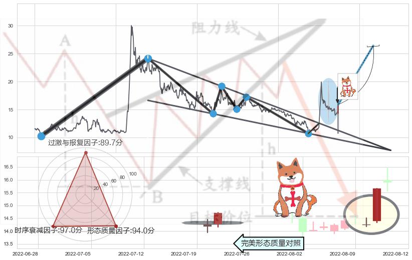 ♘ 支撑价格位13.70,可信任强度85.67%,距离最后交易2022-08-12形成的收盘价格15.90相差 -13.82%