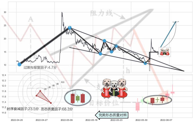 ➢ 【买1】: 激进型 买点 →(2022-06-08: 12.54 )形成突破降🚩楔型【整理】形态
