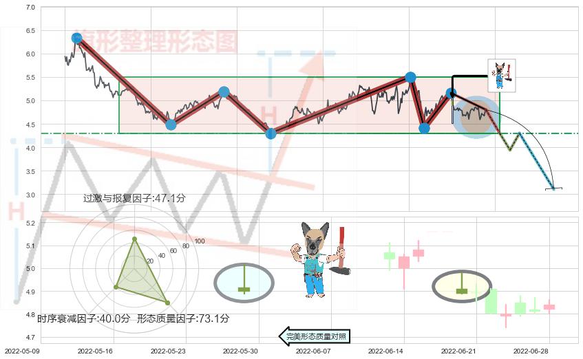 ➢ 下跌螺旋桨 🔜 下跌矩形整理临近支撑猜想转换阻力下跌 综合量化分数:43.32 【偏空】