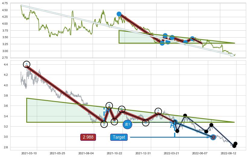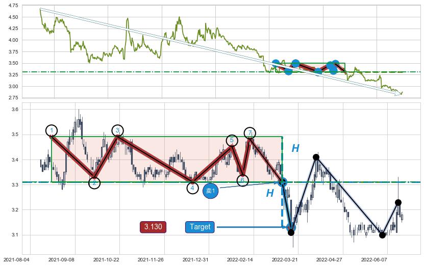 ➢ 【已达成】最小【整理】第一目标价格→(2022-06-20: 2.988 ), 后续继续【整理】下跌动力微弱,下跌较小