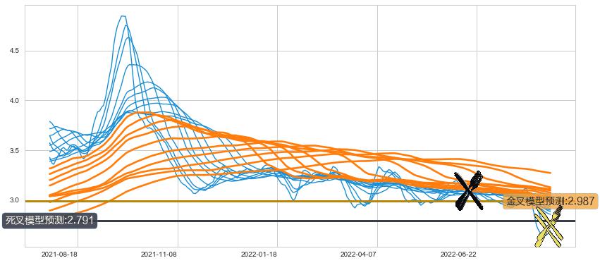 ➣ 30小时均线于(2022-06-16: 3.076)形成【死叉】基于【死叉历史模型】预测死叉后最低波谷价格: 2.840, 死叉后最低价格2.610,已经下跌超出预测最低波谷价格, 预期反弹