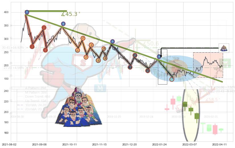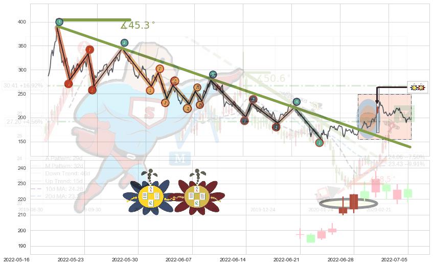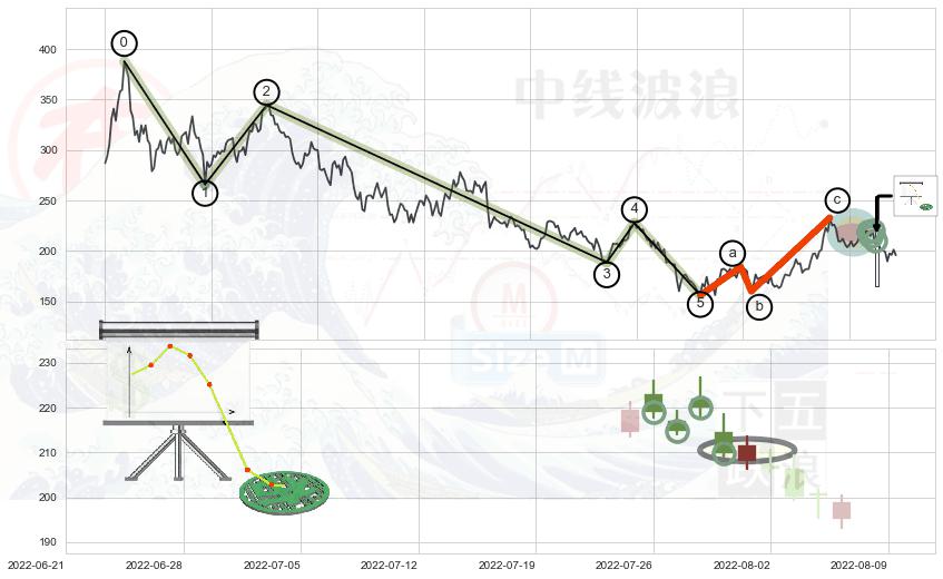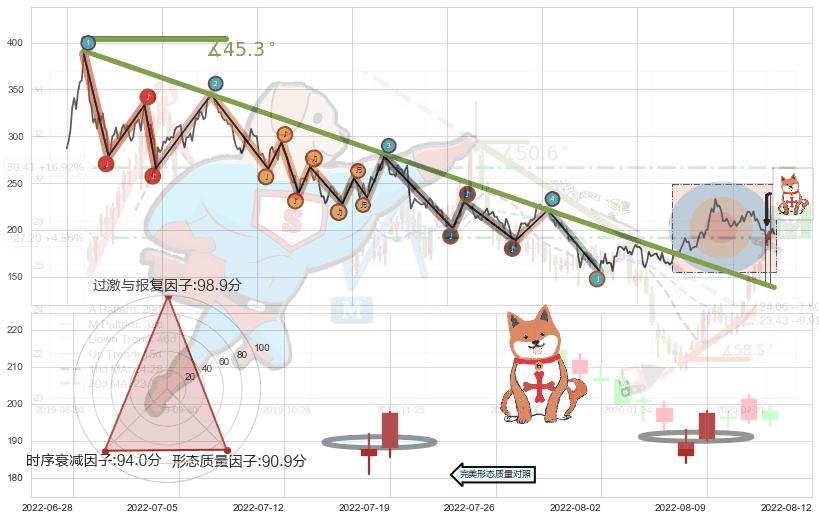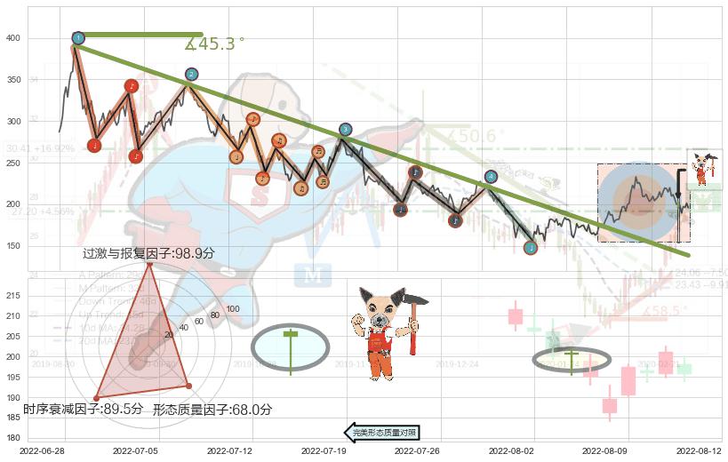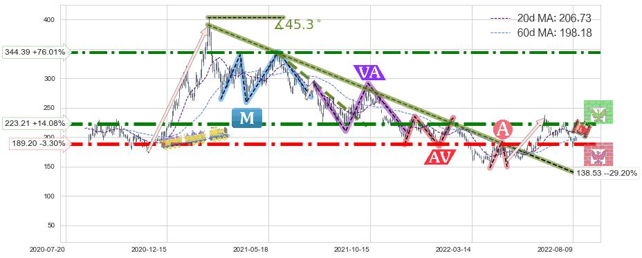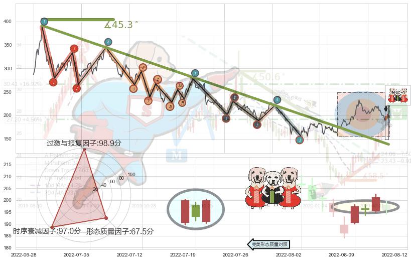 ♘ 阻力价格位223.21,可信任强度87.78%,距离最后交易2022-08-12形成的收盘价格195.66相差 +14.08%