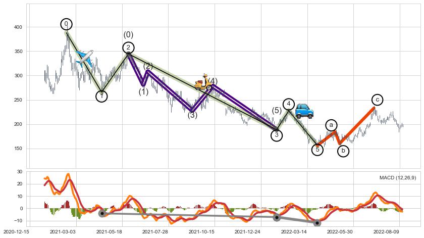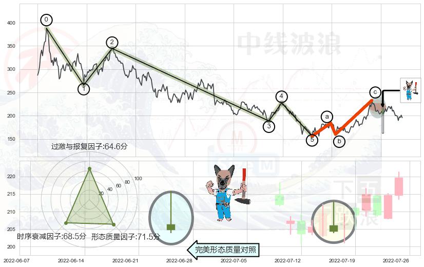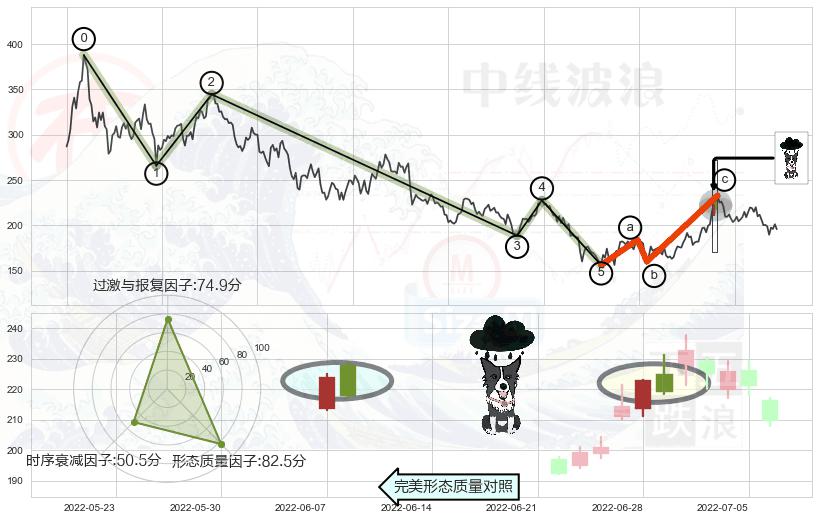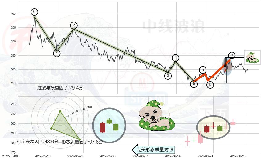 ➣ ['回调abc识别为: 【锯齿型调整浪】 ', '锯齿型:子浪535结构 ⓑ点振幅较小,ⓒ点继续发力远超ⓐ点结束位置']