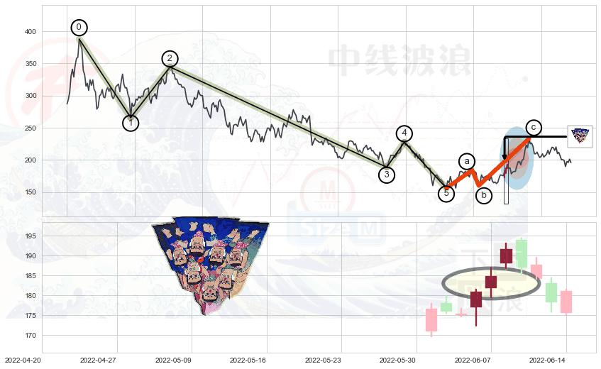 ➣ 收盘价(2022-03-22: 170.15 )→回踩→第一根k线高点(2022-03-16: 170.58 )
