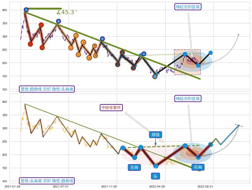 ➢ 头肩底属【中级别信号事件】趋势线属【长级别信号事件】中长周期组合信号事件,中长事件长度比52.73%