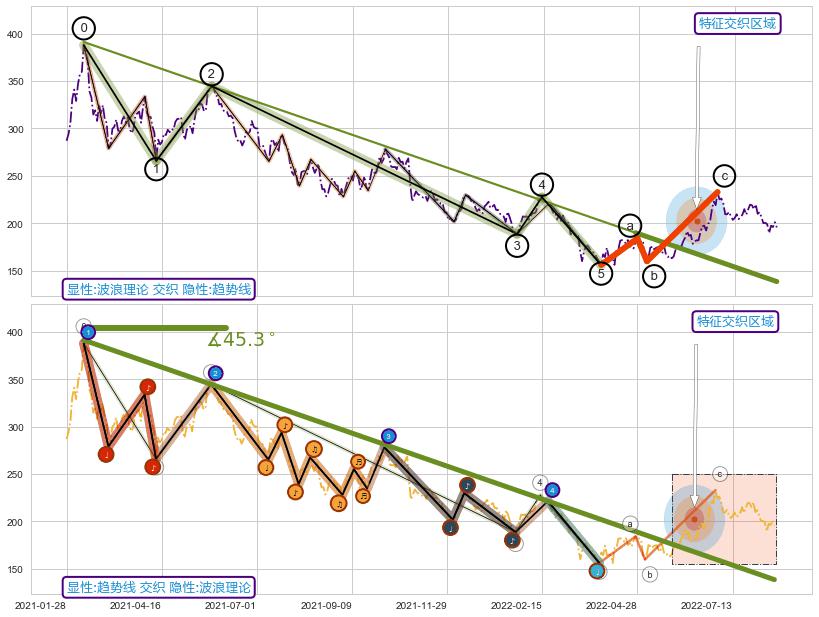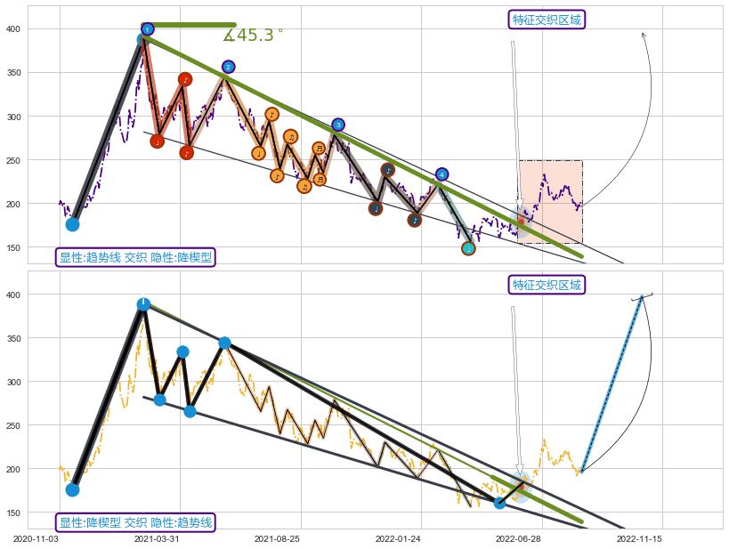 ➢ 最后的下跌趋势2021-02-10至2022-04-26:存在突破迹象,后续小反弹或者反转上涨