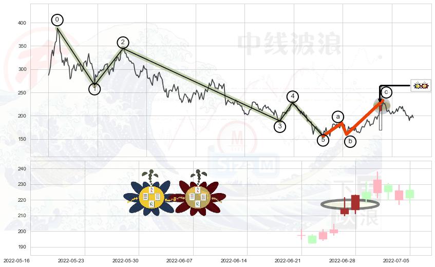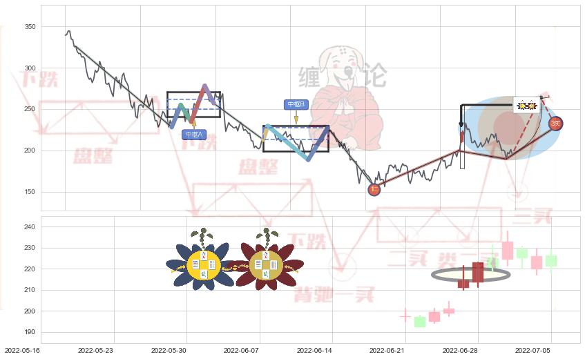 ➢ 收盘价(2022-07-06: 209.49 )→回踩→第二根k线低点(2022-06-27: 210.00 )