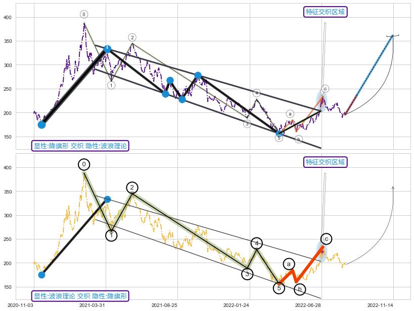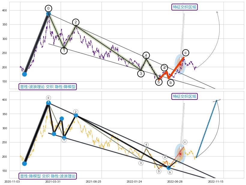 ➢ 波浪理论与降楔型信号事件周期长度级别相同,同周期信号事件