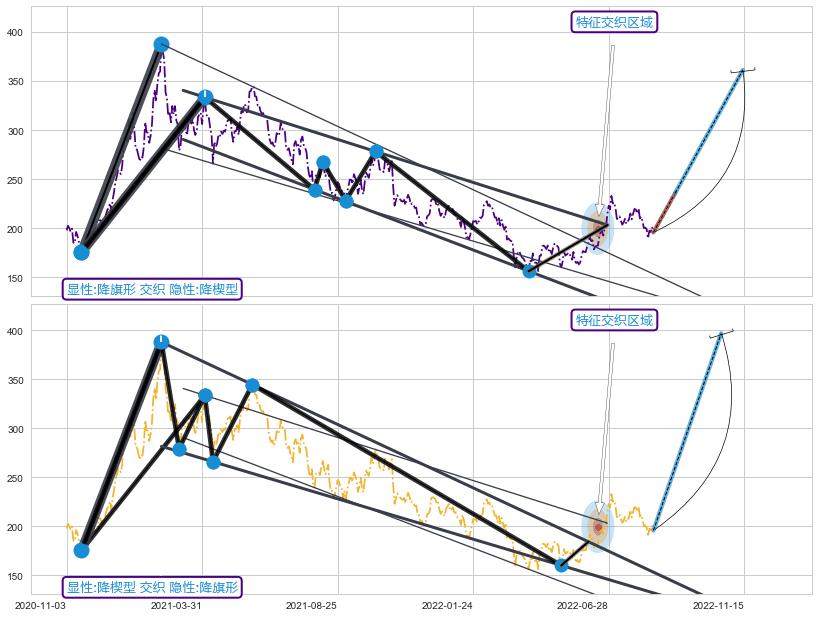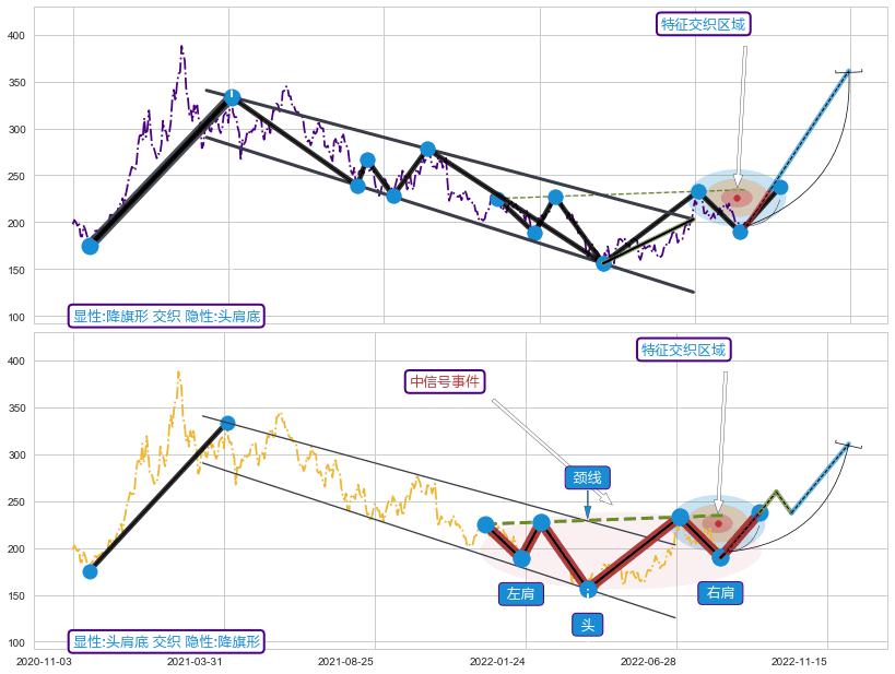 ➢ 降旗形与降楔型信号事件周期长度级别相同,同周期信号事件