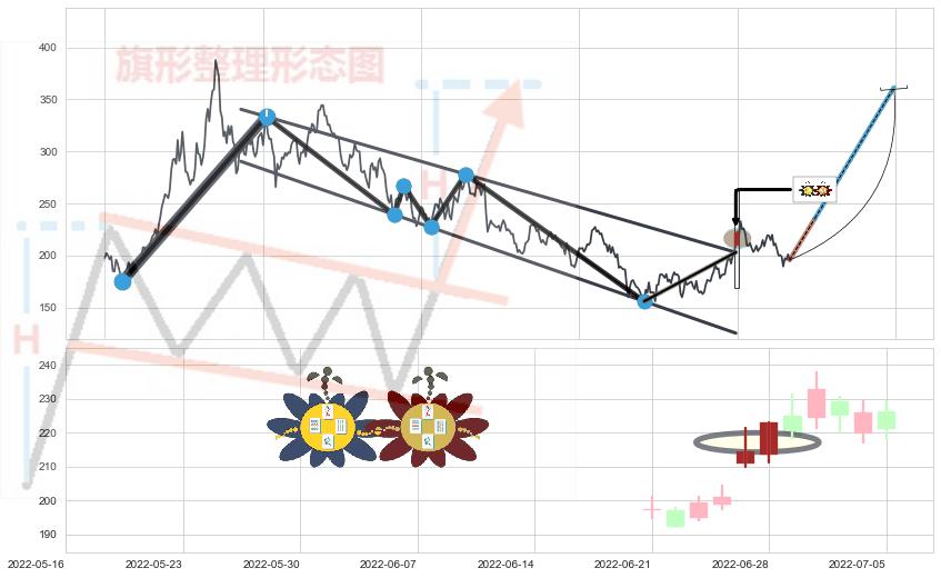 ➢ 【买1】: 激进型 买点 →(2022-06-27: 203.15 )形成突破降⚑旗形【整理】形态