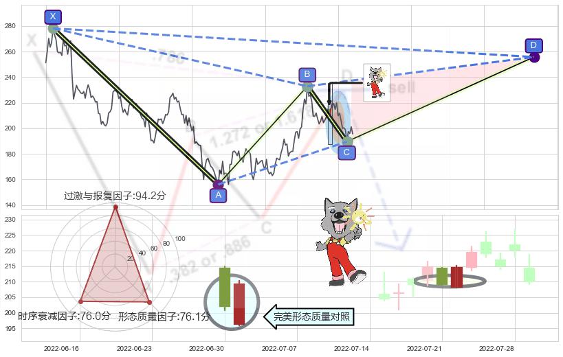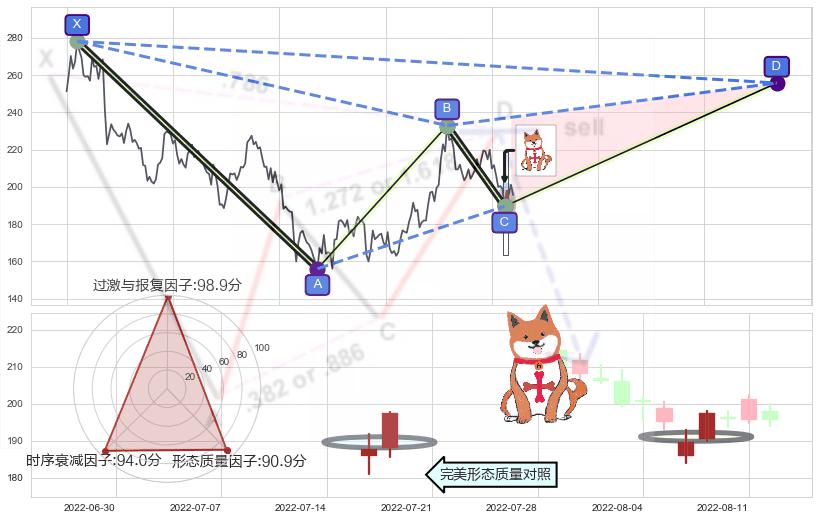 ➣ 未完成【伽利】形态起点X: 2021-10-13, 已到达C点: 2022-08-08, 预测最终D点: 2023-02-02, 共329交易日