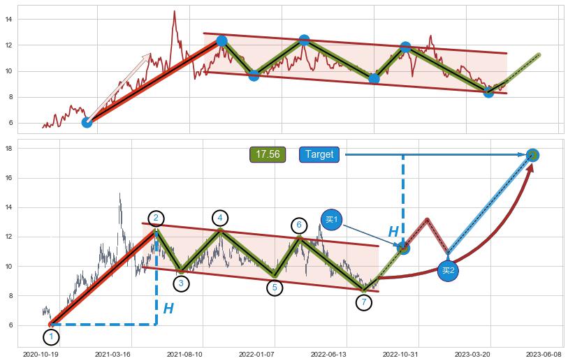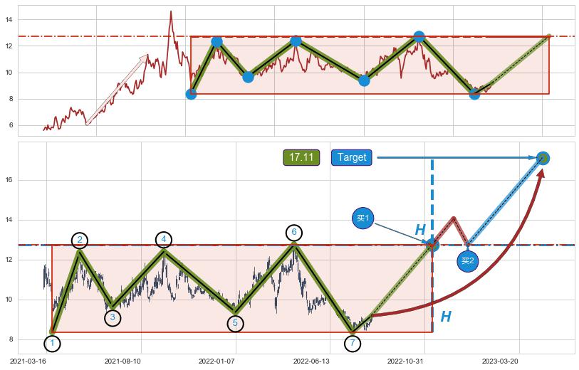 ➣ 最小中继整理涨幅→𝐇: 6.33 (𝐇旗杆的长度:旗杆起点→顶点)