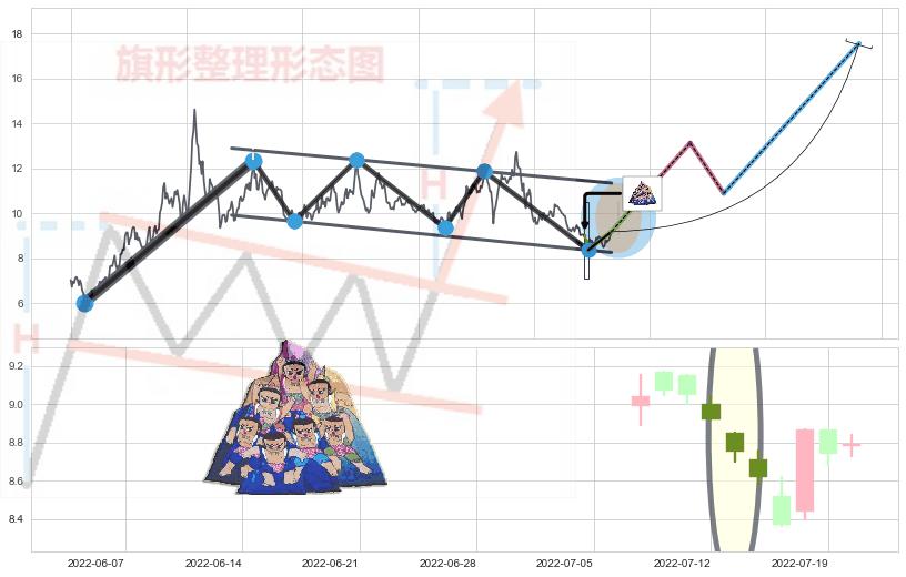 ➣ 【未确认突破,预测即将形成突破】降⚑旗形起点:2020-09-24, 预测突破点:2022-09-30,形态共491交易日