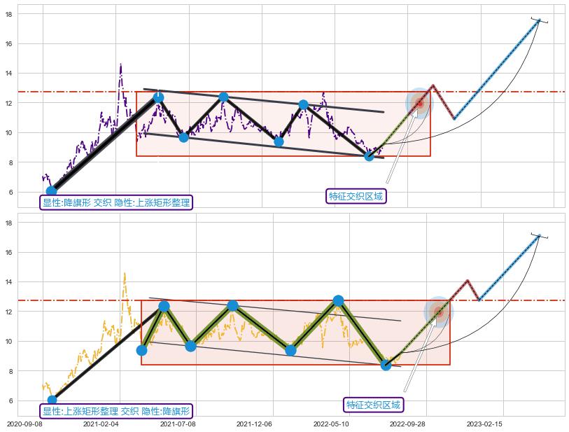 ➣ 上涨矩形整理:猜想临近关键阻力位突破点 → 临近拐点上涨 → 机会信号 → 大趋势均值回复