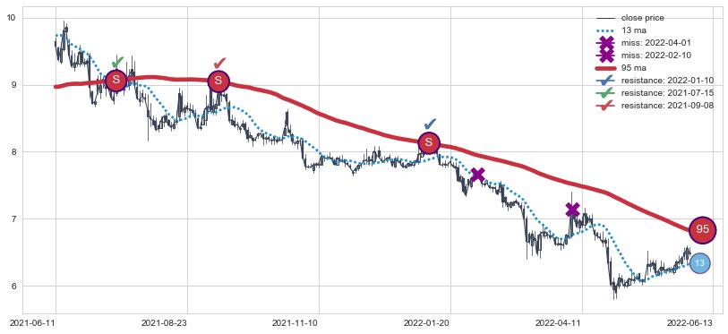 ➣ 70小时均线于(2022-06-13: 6.56)形成【金叉】基于【金叉历史模型】预测金叉后最高波峰价格: 8.05, 金叉后最高价格7.09,尚未达到预测最高波峰价格, 预期继续上涨