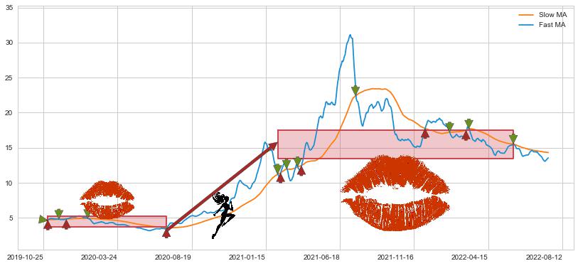 2021-02-08至2022-06-08 慢线与快线多次接触,存在上下穿越,有缠绕